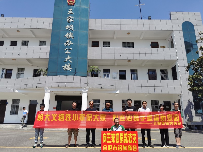 最后在鎮(zhèn)政府領(lǐng)導(dǎo)的見證下,合肥市鋁材商會(huì)獻(xiàn)上了愛心捐款并作合影留念。