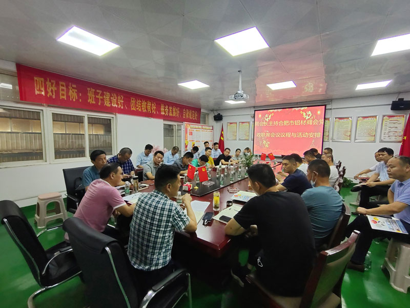 合肥市鋁材商會于2021年8月7日下午2時28分,在安徽鑫強徽幕墻材料有限 公司會議室召開黨政聯(lián)席擴大會議;參加本次會議的人員有:合肥市鋁材商 會名譽會長楊政、會長周鵬,常務(wù)副會長邵宏君、曹知社、張明、李財林、 張賓、胡運樸、劉宏春,副會長姚飛、高四林、錢俊勝、馬曉春,理事徐光 元,監(jiān)事侯克平,會員:胡軍、田超、張懷金,黃鶴樓安徽辦事處豐雷,中 國二十冶集團安徽分公司張軍,智美貿(mào)易(中鋁)陳志美,鑫強徽公司部分 員工以及商會秘書長、黨支部書記顧德如、秘書處陳海妹等。