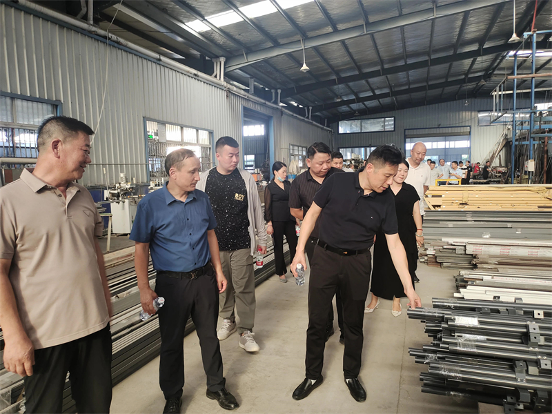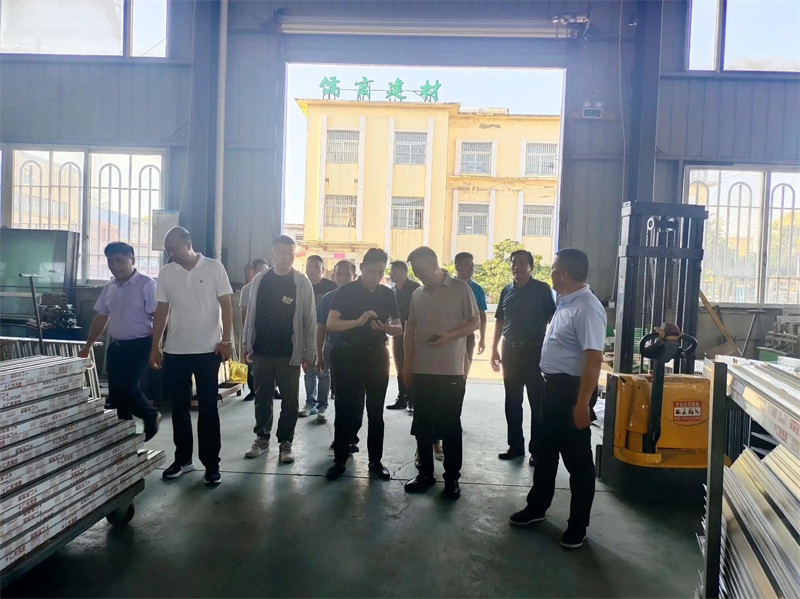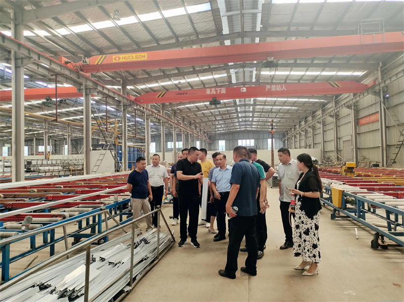 告別了漢威鋁業(yè),一行人來到安徽藍(lán)幟鋁業(yè)有限公司,公司于2018年元月2日注冊(cè)成立,投資1.5億元,占地46畝,現(xiàn)有:鋁型材擠壓生產(chǎn)線10條;靜電粉末涂裝生產(chǎn)線2條;鋁型材氧化生產(chǎn)線1條;木紋轉(zhuǎn)印生產(chǎn)線4條;隔熱斷橋穿條復(fù)合生產(chǎn)線4條;隔熱斷橋膠注復(fù)合生產(chǎn)線4條;智能家居生產(chǎn)線4條;智能門窗生產(chǎn)線4條;建成鋁型材生產(chǎn)車間13200平方米、鋁制品深加工生產(chǎn)車間5000平方米、成品庫(kù)3200平方米、原料庫(kù)1200平方米、研發(fā)基地及辦公綜合樓1600平方米、配套用房600平方米,購(gòu)置國(guó)內(nèi)外先進(jìn)生產(chǎn)設(shè)備,配套建設(shè)環(huán)保設(shè)施、公用工程等,總建筑面積24800平方米。年產(chǎn)20000噸新型節(jié)能鋁合金型材、50000套智能化建筑系統(tǒng)配套產(chǎn)品。