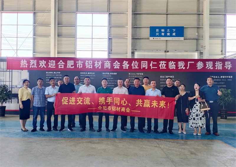 為加強(qiáng)合肥市鋁材商會(huì)的深化合作,形成優(yōu)勢(shì)互補(bǔ)共同發(fā)展,2022年8月13日,合肥市鋁材商會(huì)組織約14家會(huì)員企業(yè),在會(huì)長(zhǎng)周鵬的帶領(lǐng)下,頂著酷暑來到了鋁材生產(chǎn)基地—淮北,一行人受到了淮北市門窗幕墻協(xié)會(huì)會(huì)長(zhǎng)任曉偉、秘書長(zhǎng)葛承蘭等領(lǐng)導(dǎo)的熱情接待,在他們的引領(lǐng)下,開展了為期兩天的參觀交流活動(dòng)。