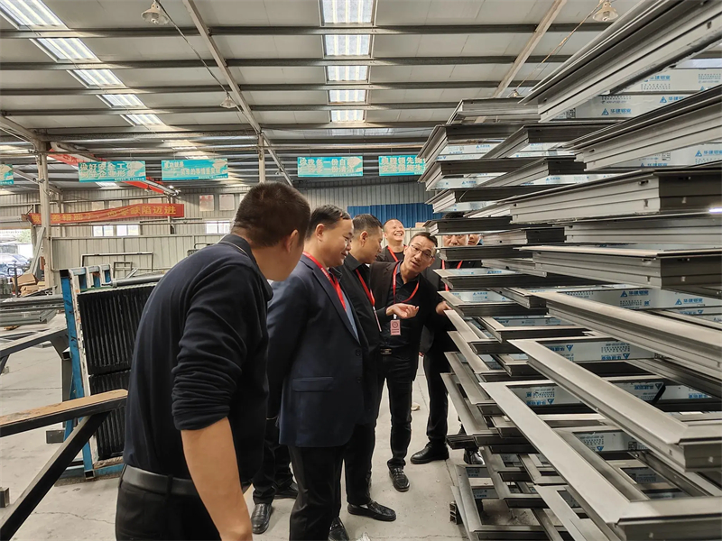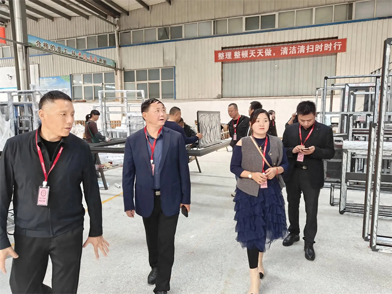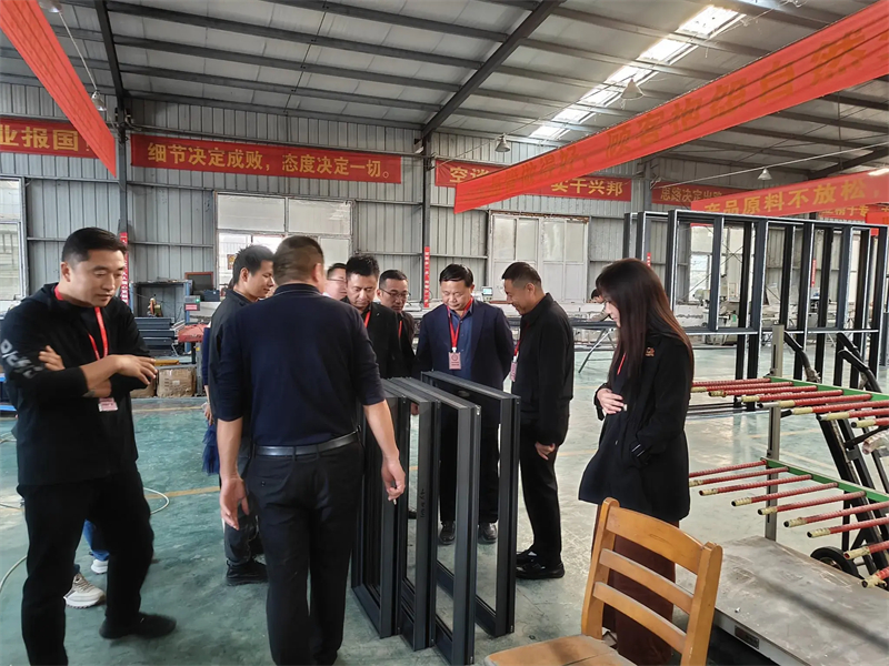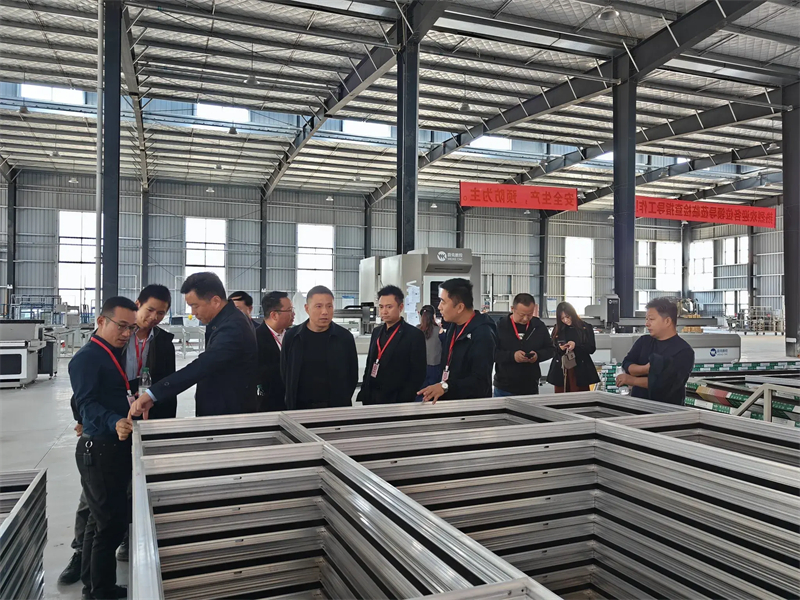 公司總經(jīng)理張武熱情接待了商會一行人。在張總的帶領(lǐng)下,大家參觀了門窗生產(chǎn)車間。公司全線采用世界先進的門窗組裝生產(chǎn)流水線及整窗焊接生產(chǎn)線,并引入了德國先進的門窗系統(tǒng)技術(shù)。精工細(xì)作確保了每一扇門窗的性能指數(shù)都達(dá)到國際先進水平。產(chǎn)品涵蓋了高端100系列雙內(nèi)開、外開平開金剛紗一體窗、113系列、120系列外開金剛紗一體窗、提升推拉門、超低能耗被動窗、高性能幕墻等多種類型。自投產(chǎn)以來,公司已形成高端系統(tǒng)門窗產(chǎn)能40萬平米,節(jié)能建筑玻璃50萬平方米,節(jié)能幕墻15萬平米的規(guī)模,是華東地區(qū)較大的門窗幕墻生產(chǎn)企業(yè)。