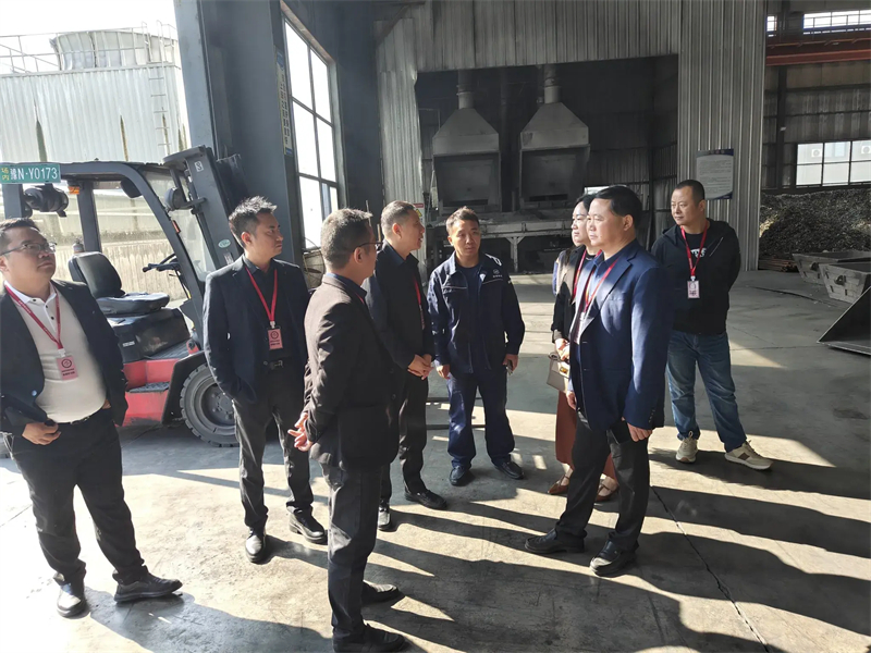 活動第二天,走訪團一行首先抵達(dá)了位于河南省永城市城關(guān)鎮(zhèn)的河南鼎鑫新材料科技有限公司。在公司領(lǐng)導(dǎo)郭帥的陪同下,大家依次參觀了第二、第三廠區(qū)。通過參觀和聽取介紹,大家了解到該公司是一家專注于新材料技術(shù)研發(fā)、有色金屬冶煉及有色金屬壓延加工的企業(yè)。公司主要業(yè)務(wù)包括收購廢鋁,并通過熔化爐經(jīng)過配料、熔煉、精煉、扒渣、攪拌、靜置等一系列工序,完成精制鋁液的制備。隨后,精制鋁液經(jīng)過鑄造、冷卻,生產(chǎn)出鋁合金棒和鋁合金錠,實現(xiàn)了資源的再利用,踐行了生產(chǎn)潔凈化、廢物資源化的綠色發(fā)展模式。同時,公司還致力于優(yōu)化現(xiàn)有產(chǎn)業(yè)結(jié)構(gòu),確保高質(zhì)量、高效益的發(fā)展。其生產(chǎn)流程自動化程度較高,鋁錠、鋁棒品質(zhì)檢測設(shè)備采用了性能優(yōu)越的瑞士進口光譜儀,檢測能力和精度在鋁合金行業(yè)中處于領(lǐng)先地位。公司年產(chǎn)值近15億,年納稅額超過1億,展現(xiàn)了其強勁的發(fā)展實力。